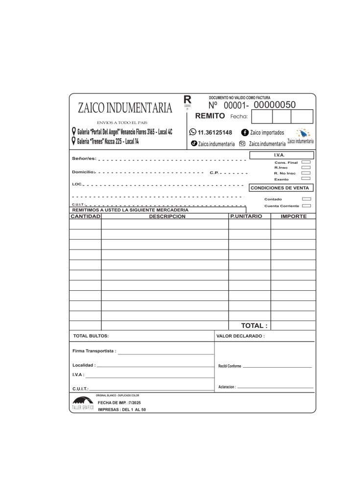 InstagramPresupuestos · Envíos · Remitos — diseño e impresión listos para usar.